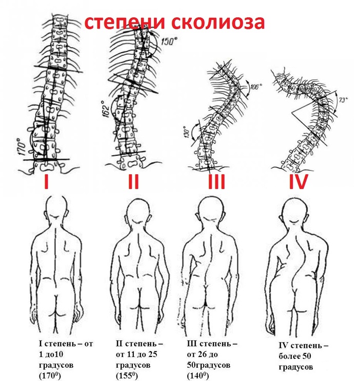 Искривления бывают разных типов, чаще всего они напоминают буквы С, S или Z – в зависимости от «тяжести» случая. При этом степень заболевания определяется градусом искривления в этих углах, при слишком большом искливлении (более 10 градусов) необходимо лечение у специалистов. При малых степенях можно обойтись собственными силами, однако консультация врача необходима в любом случае – на глаз величину проблемы определить практически невозможно.